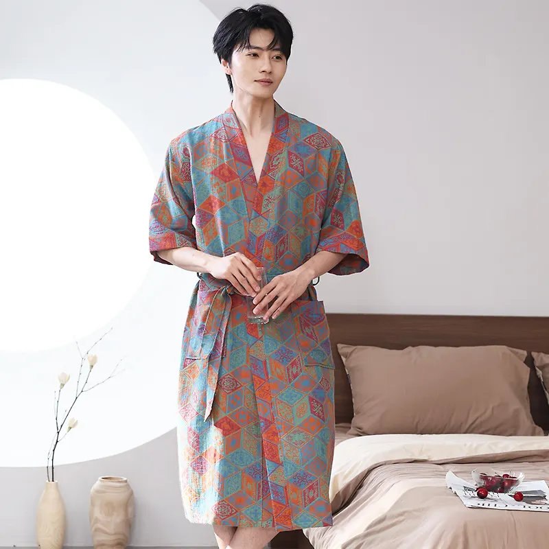 Домашний халат из двухслойной хлопковой марли в японском стиле.