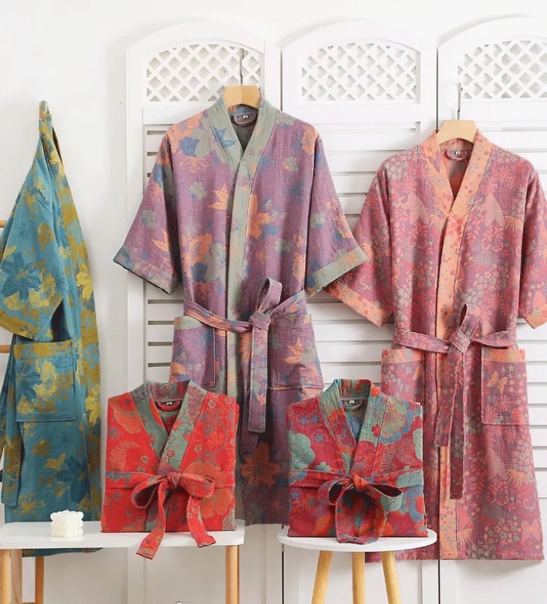 Домашний халат из двухслойной хлопковой марли в японском стиле.