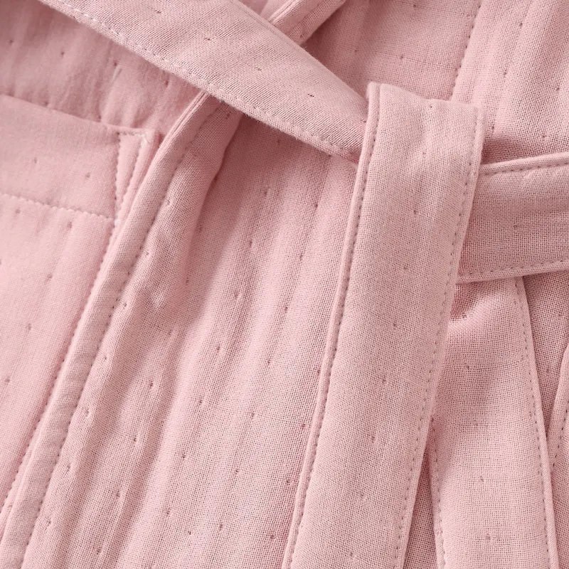 Плотный марлевый халат на запах с поясом и накладными карманами в японском стиле.
