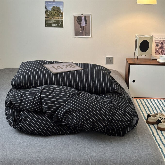 Хлопковое белье "Черные полосы" (Япония) 1.5/1.8 / арт. 279-44