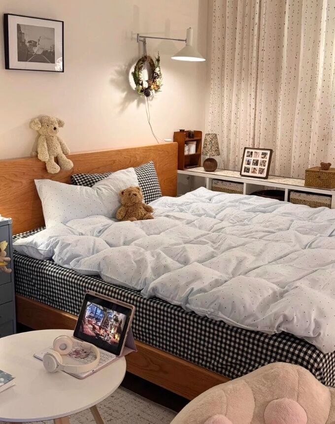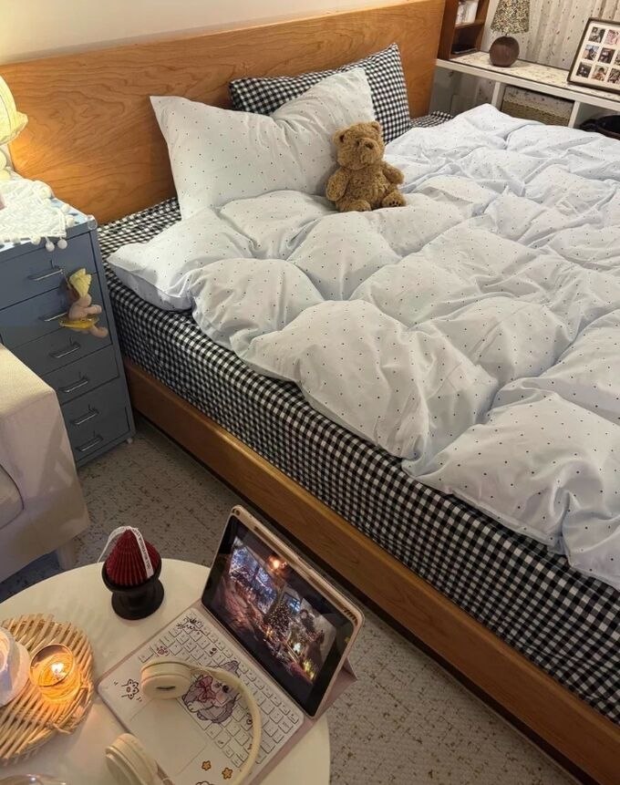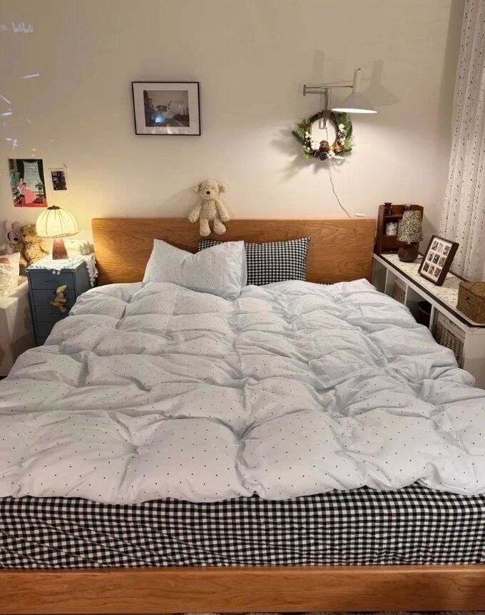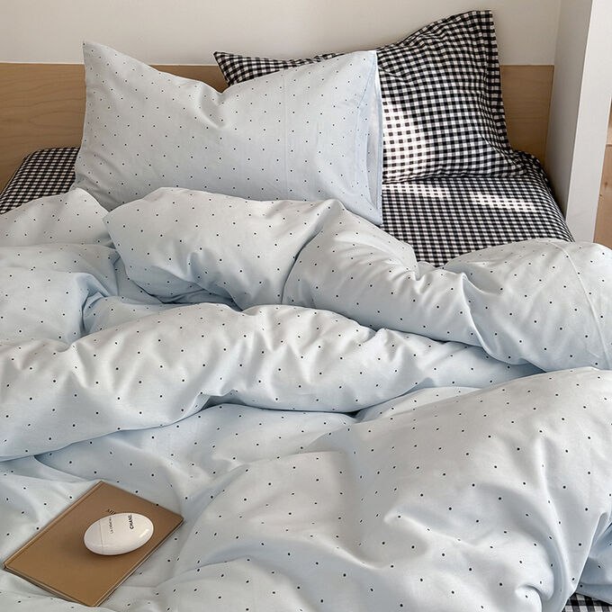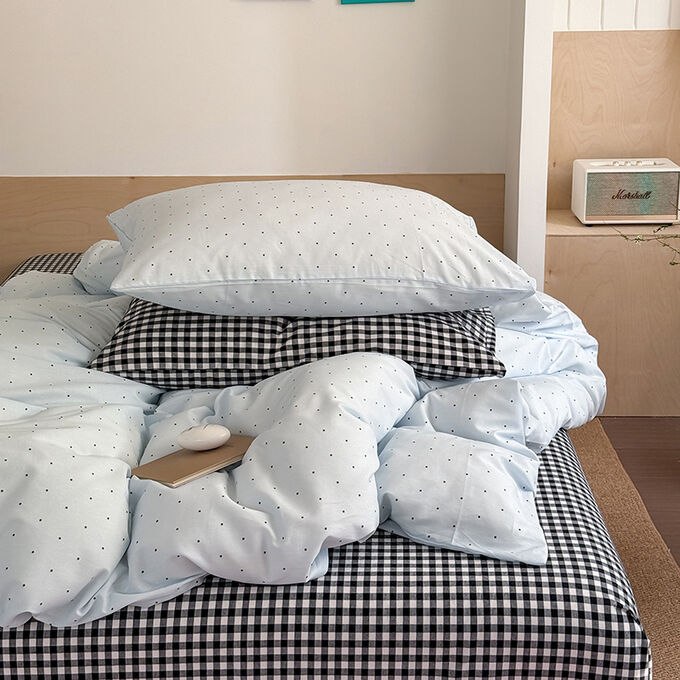 - Хлопковое белье "Голубой горох и клетка" (Япония) 1.5/1.8 / арт. 282-35