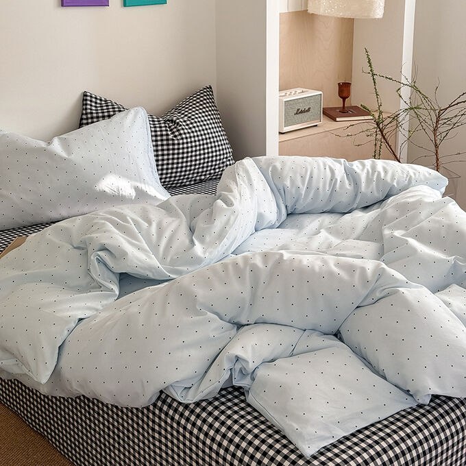 Хлопковое белье "Голубой горох и клетка" (Япония) 1.5/1.8 / арт. 282-35