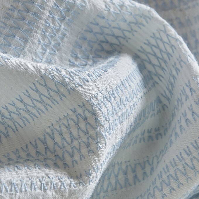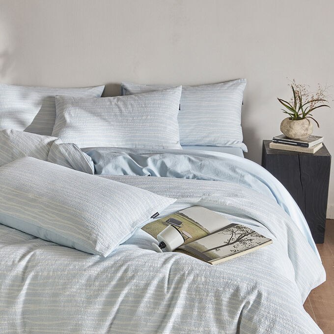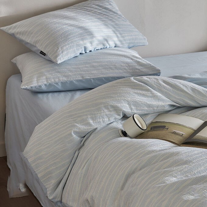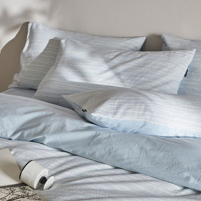 Это простое постельное белье из окрашенного хлопка-сырца. В полотне с текстурой попадаются семена хлопка, которые постепенно опадают после нескольких стирок.