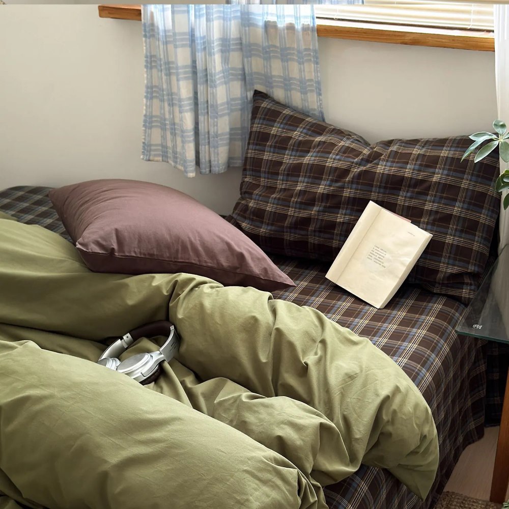 Хлопковое белье "Зелено-коричневая клетка" (Япония) 1.5/1.8 / арт. 289-8