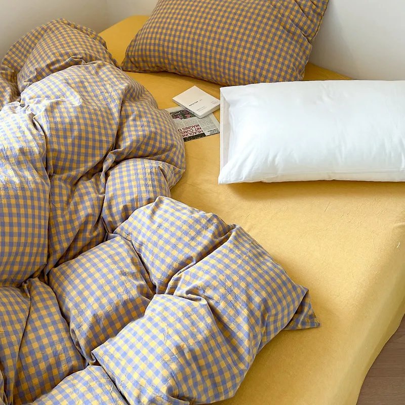 - Хлопковое белье "Желто-фиолетовая клетка" (Япония) 1.5/1.8 / арт. 289-7