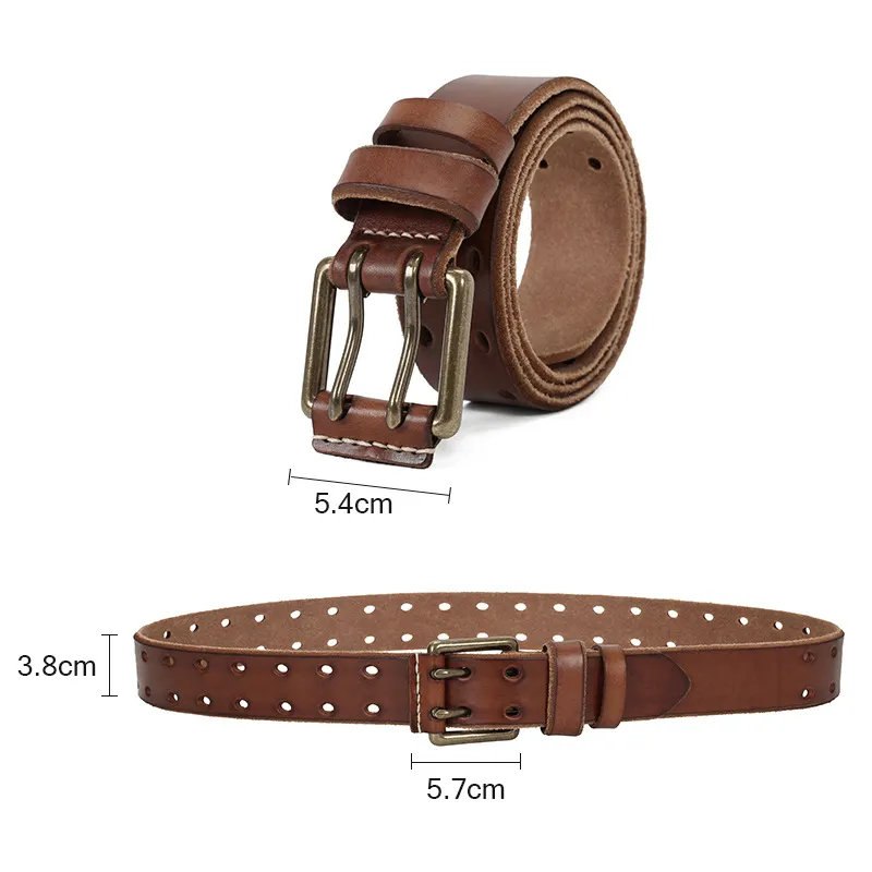 Длинный широкий мужской ремень из плотной натуральной кожи подходит для брюк и к джинсам.