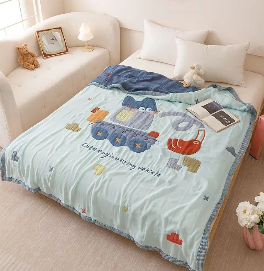 - Марлевое хлопковое одеяло "Котенок и паровоз", 150*200 см. / арт. 287-30