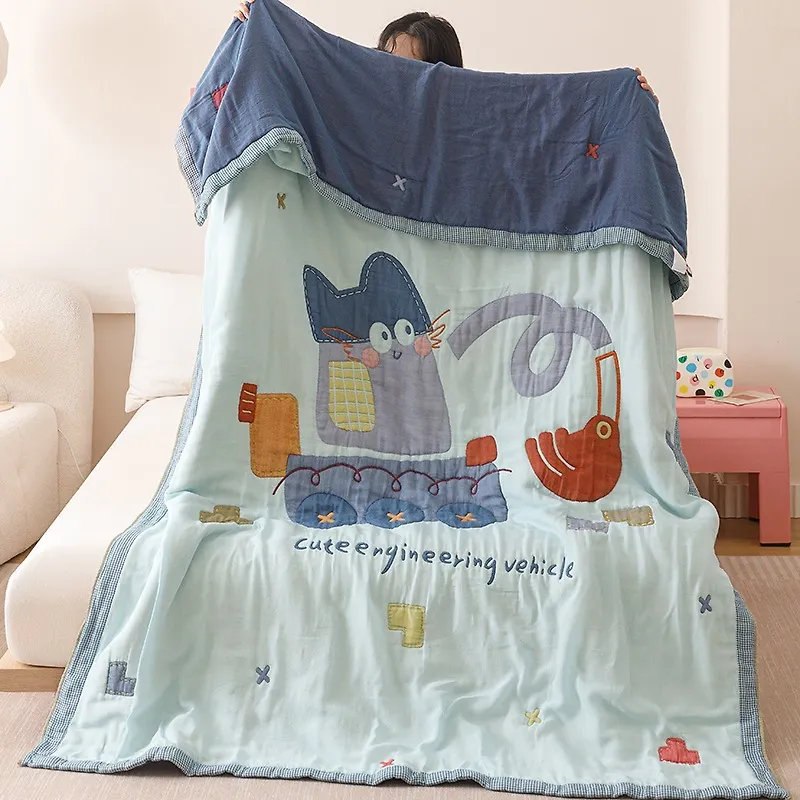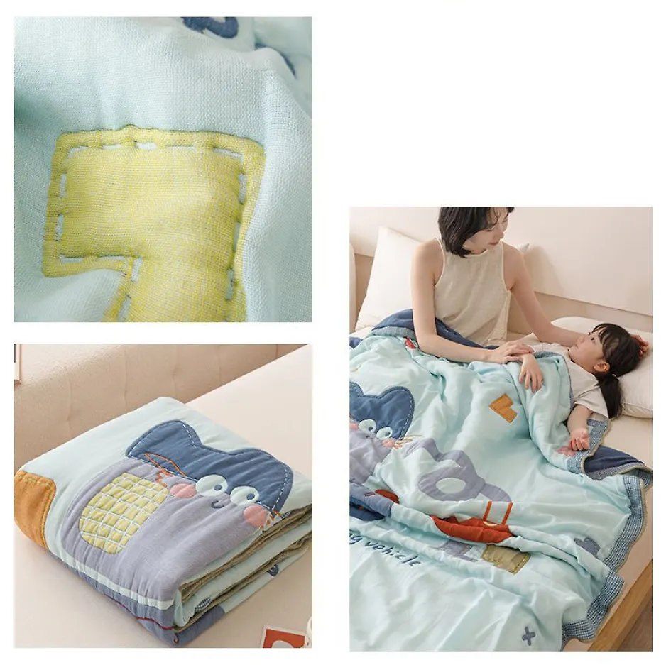 Теплое хлопковое одеяло из многослойной марли сложного плетения с плотным, но дышащим наполнителем. Соевое волокно и хлопчатобумажная ткань переплетаются в сетку, которая обеспечивает воздушную текстуру.