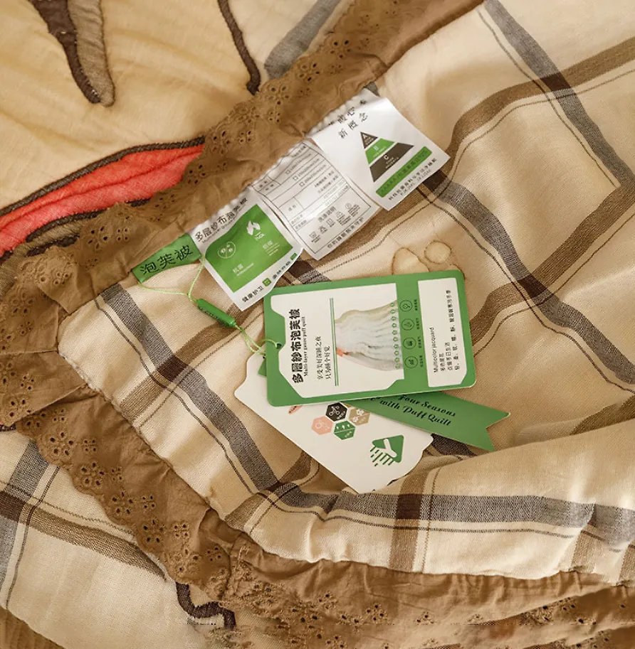 Теплое хлопковое одеяло из многослойной марли сложного плетения с плотным, но дышащим наполнителем. Соевое волокно и хлопчатобумажная ткань переплетаются в сетку, которая обеспечивает воздушную текстуру.