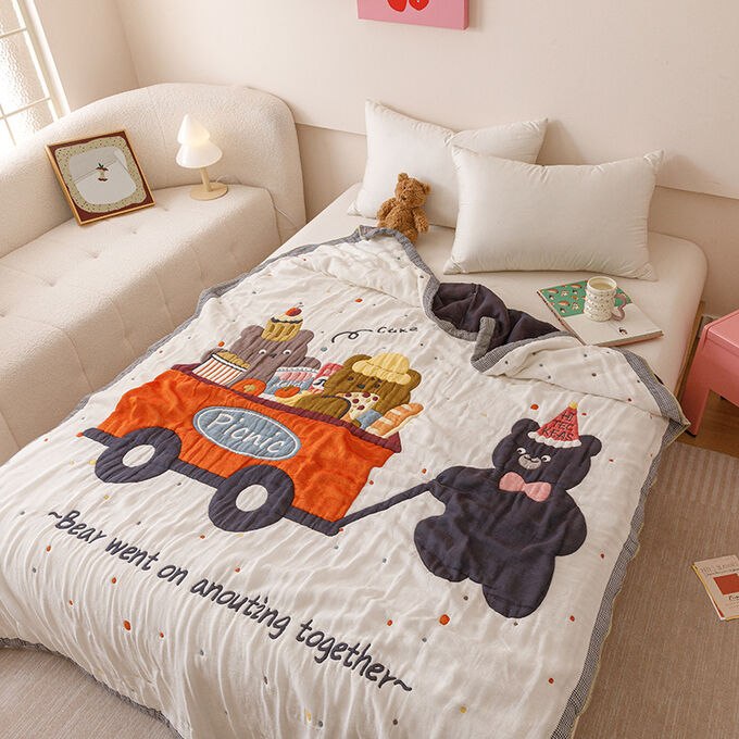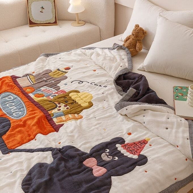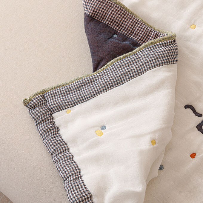 Теплое хлопковое одеяло из многослойной марли сложного плетения с плотным, но дышащим наполнителем. Соевое волокно и хлопчатобумажная ткань переплетаются в сетку, которая обеспечивает воздушную текстуру.