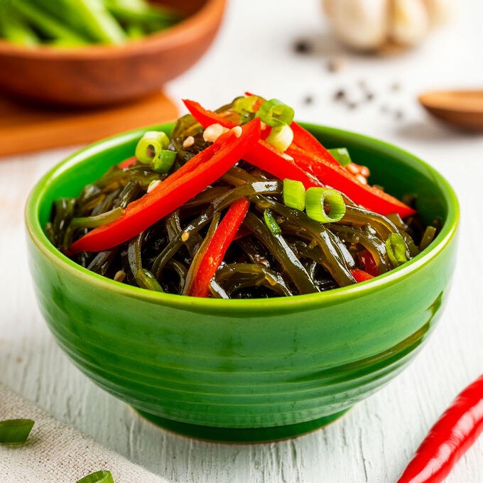 Для салатов и супов подойдет сушеная морская капуста или вакамэ.
