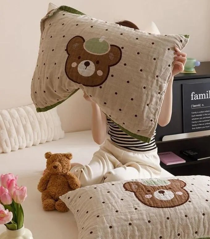 Пятислойная утолщенная марлевая "наволочка" в японском стиле (накидка листовая для подушки). Не скользит.