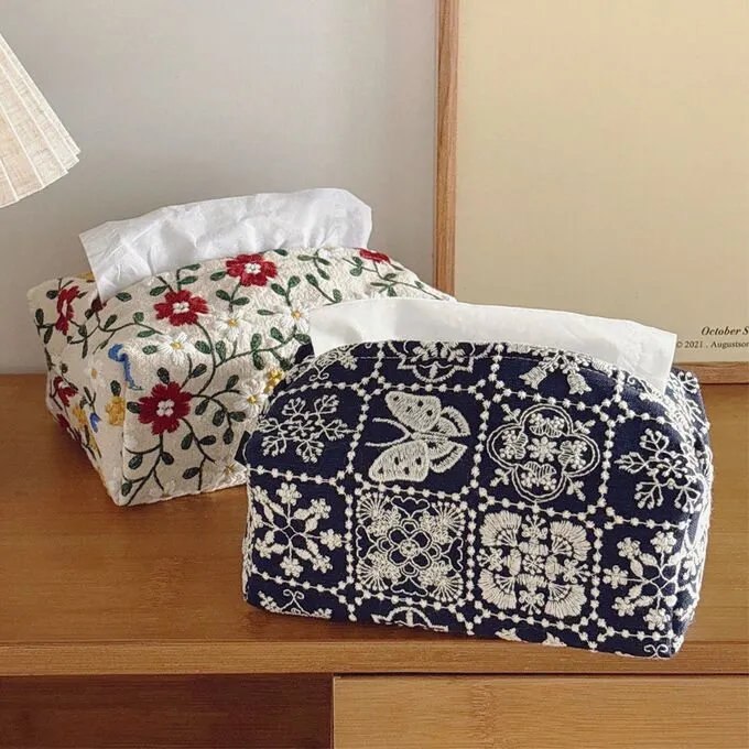 Вышитый чехол для упаковки салфеток, высококачественная тканевая сумка чехол для салфеток, органайзер с вышивкой.