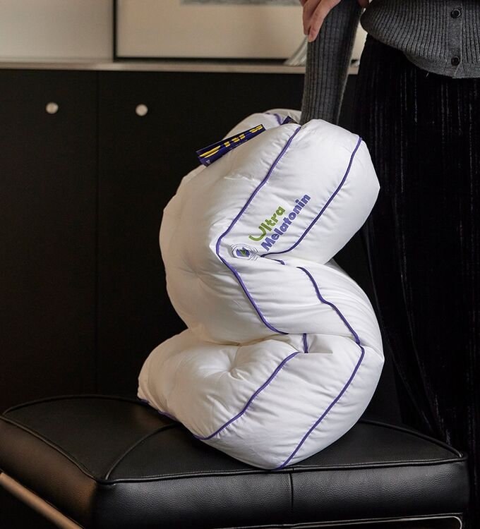 Подушки с таким волокном призваны способствовать засыпанию и улучшению качества сна за счет постепенного высвобождения мелатонина при контакте с кожей или теплом тела, имитируя его естественную выработку организмом. Это может помочь быстрее заснуть, справиться с бессонницей или симптомами смены часовых поясов.