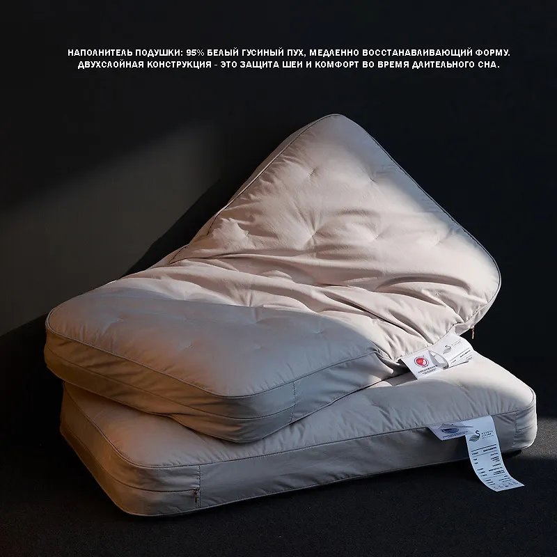 Медленно восстанавливающая форму подушка для шеи из гусиного пуха H-образной формы подарит вам крепкий здоровый сон и легкое пробуждение без боли.