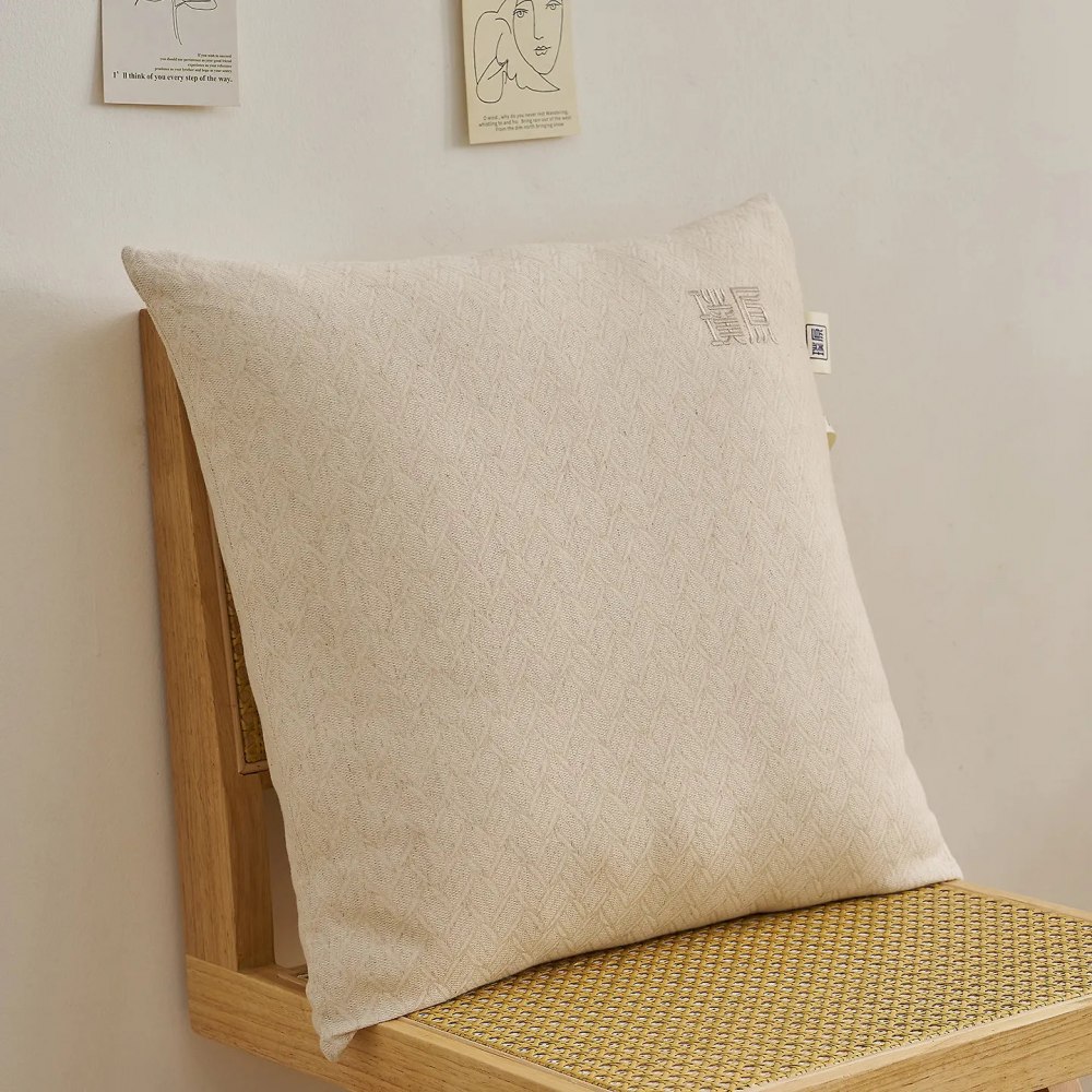 Декоративная подушка в японском стиле из льна и хлопка.