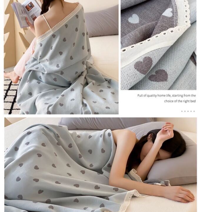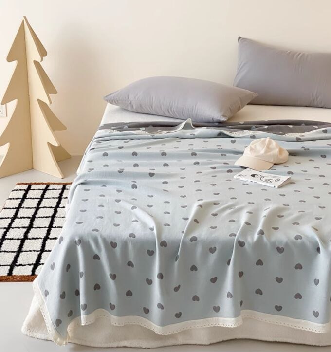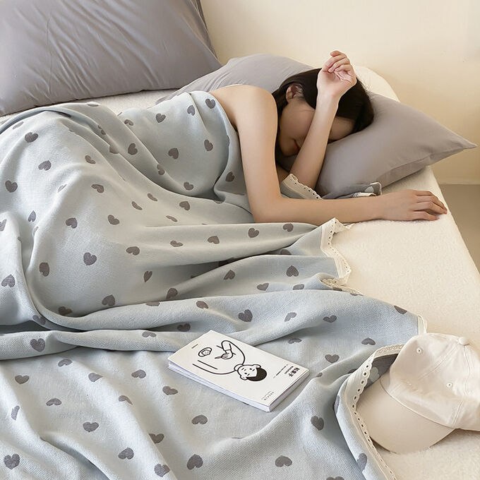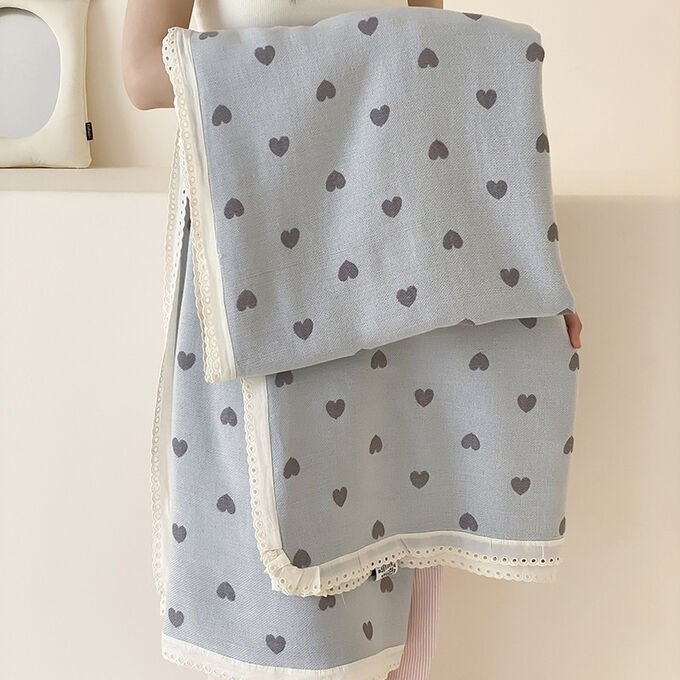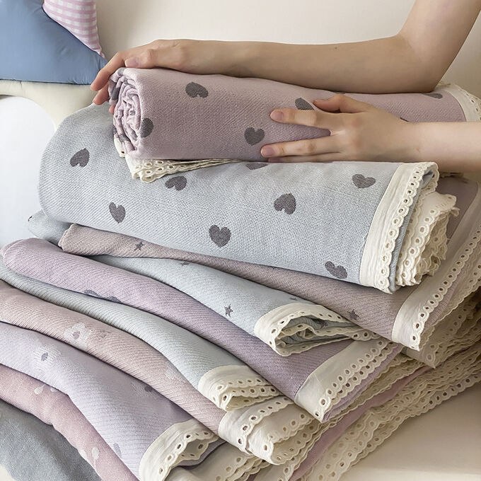 Тонкое двухслойное марлевое покрывало из смешанных волокон, охлаждающее летнее одеяло, плед, прохладное полотенце, шаль из тенселя для обеденного перерыва. Отделка шитьем.