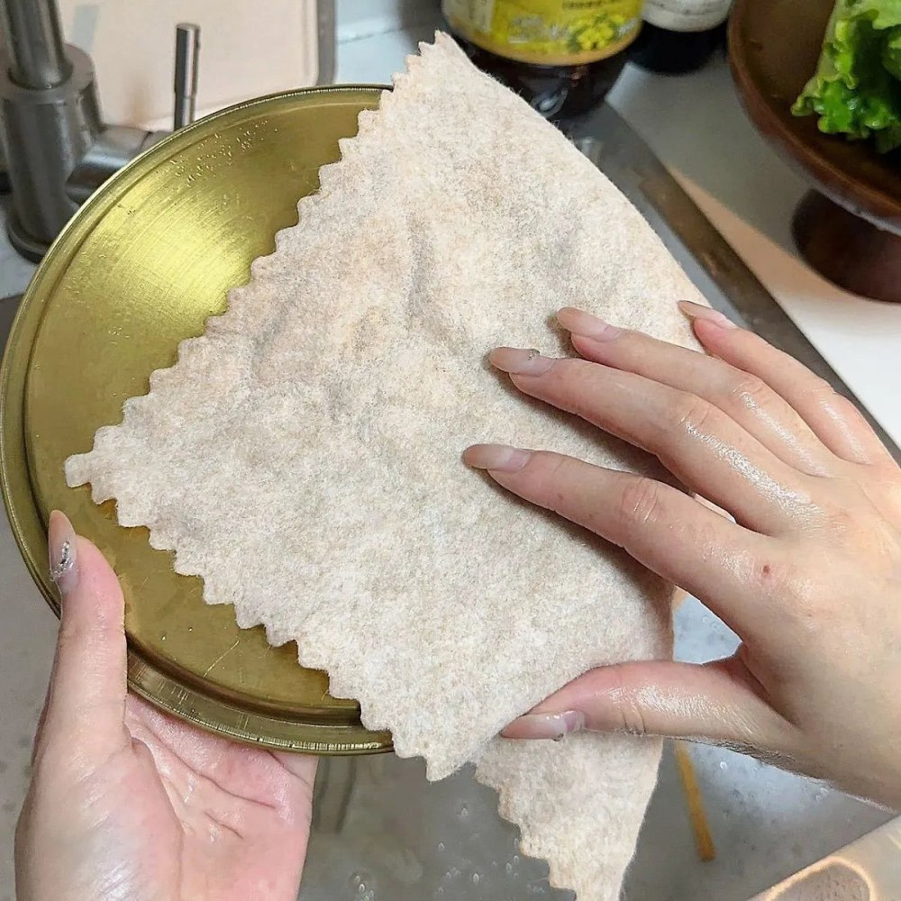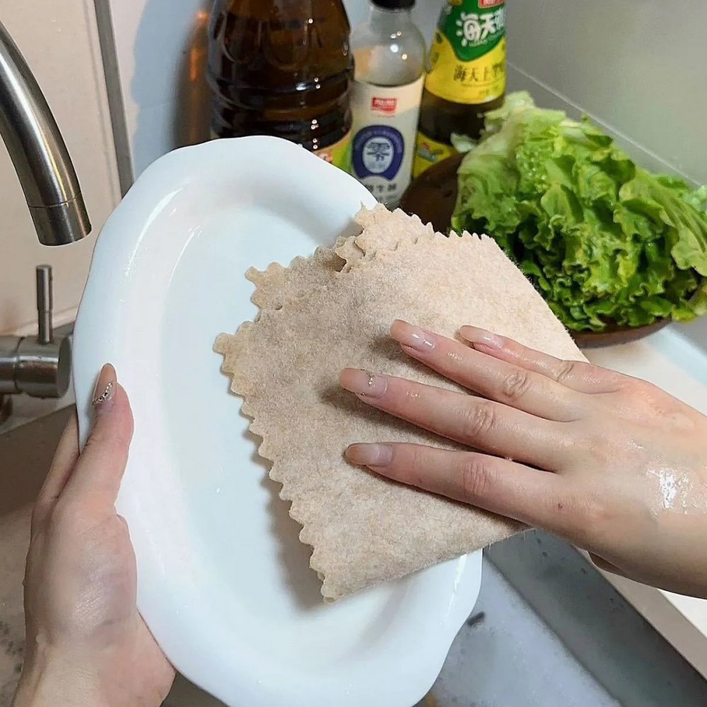 Чистящая мочалка-салфетка подходит для сухого мытья посуды и влажного использования.