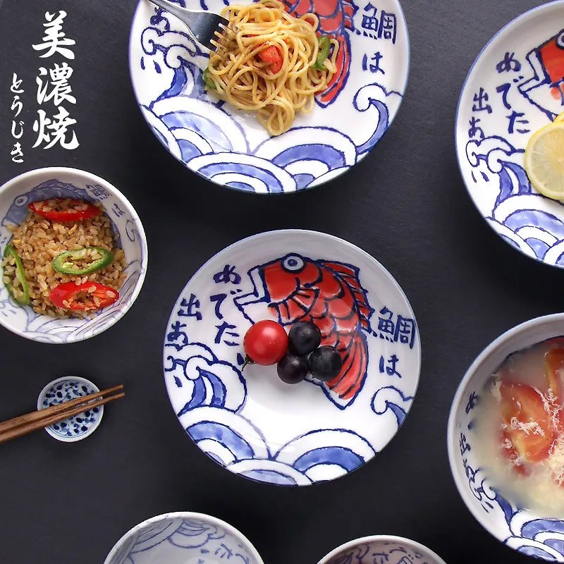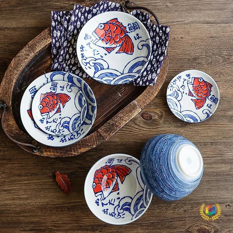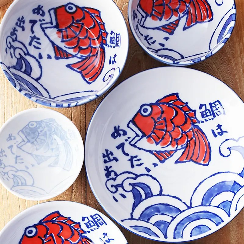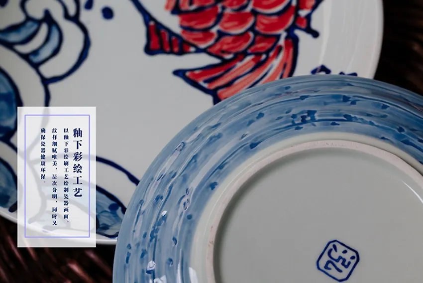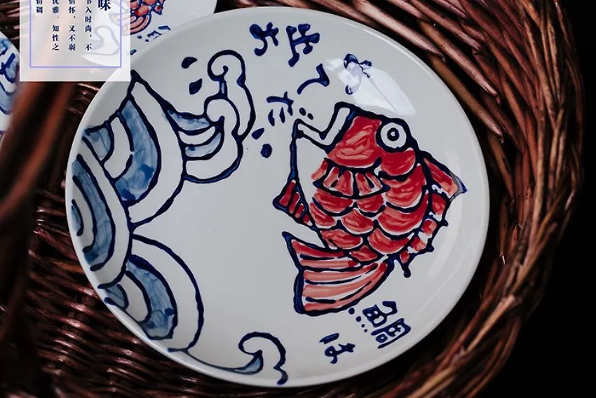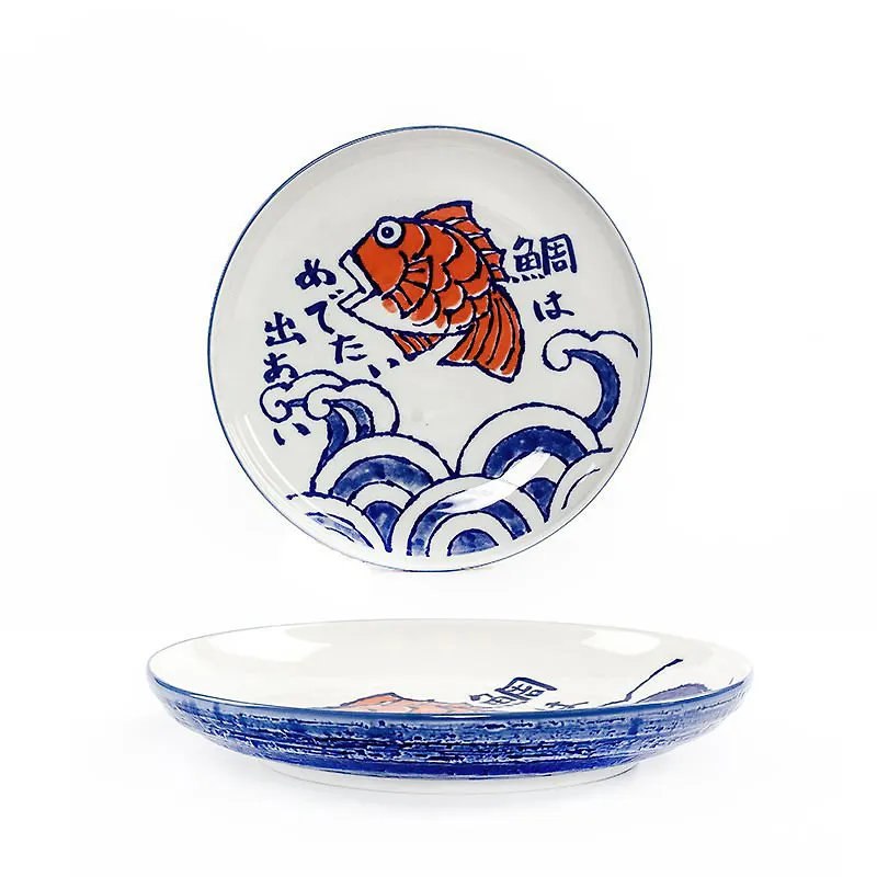 Расписанная вручную керамическая тарелка в японском стиле.