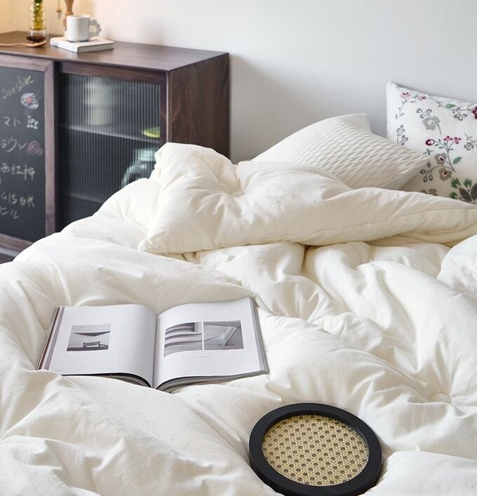 Легкое, тонкое одеяло в японском стиле из натурального неокрашенного хлопка-сырца и высококачественного смешанного наполнителя.